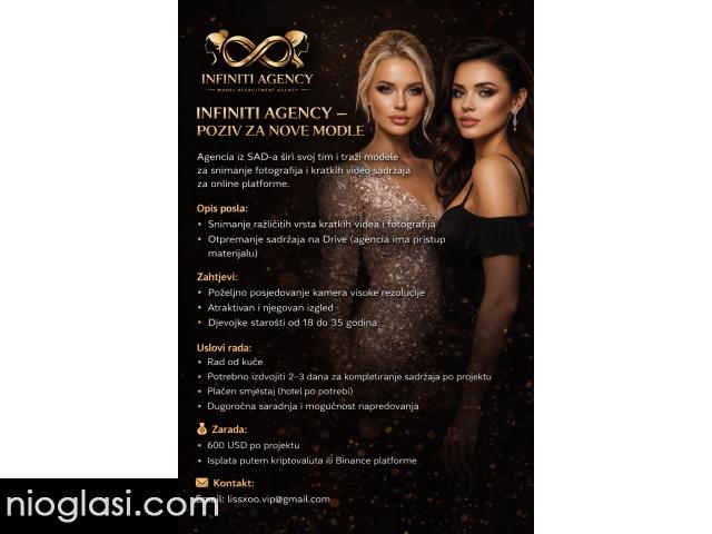 Agencija iz SAD-a širi svoj tim i traži modele za snimanje fotografija i kratkih video sadržaja za online platforme.
