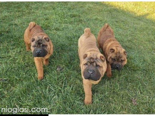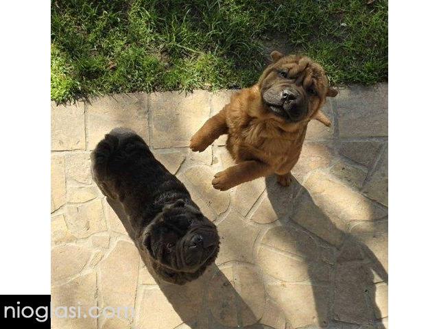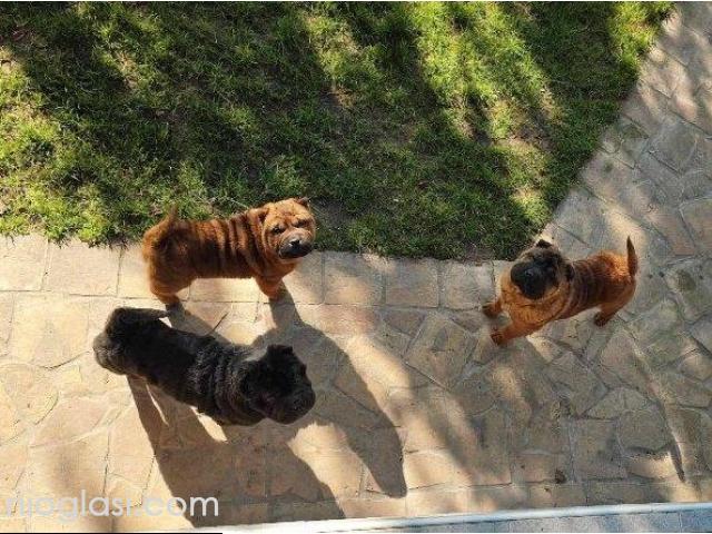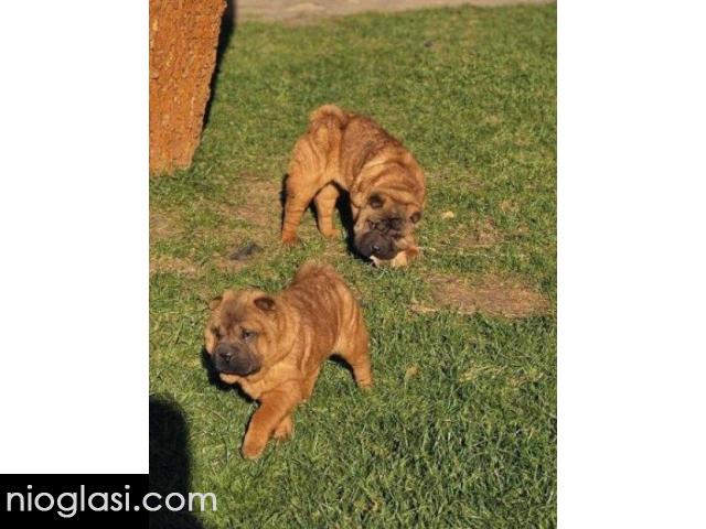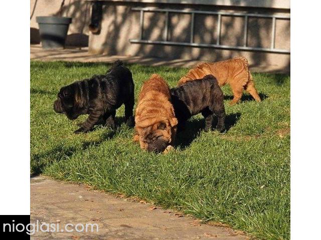 Čistokrvni Šar Pej (Shar Pei) štenci,crvena (mahagoni) i plava(siva)krvna linija, starosti 4 meseca, spremni za preuzimanje. Očišćeni od parazita, uredno vakcinisani, pod stalnim nadzorom veterinara-urađen eye taping.